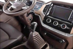 Bảng taplo được ốp vân gỗ cao cấp, kết hợp cụm đồng hồ đa thông tin hiển thị rõ nét các thông số quan trọng như tốc độ, mức nhiên liệu và tình trạng vận hành, giúp người lái dễ dàng theo dõi và kiểm soát xe an toàn hơn. Hệ thống điều hòa công suất lớn đảm bảo cabin luôn mát mẻ vào mùa hè và ấm áp khi thời tiết lạnh. Ngoài ra, cửa kính chỉnh điện cũng góp phần tăng thêm sự tiện lợi trong quá trình sử dụng. Tất cả những trang bị này hòa quyện tạo nên không gian lái hiện đại, tiện nghi và thoải mái, giúp tài xế luôn duy trì trạng thái tốt nhất trên mọi cung đường.